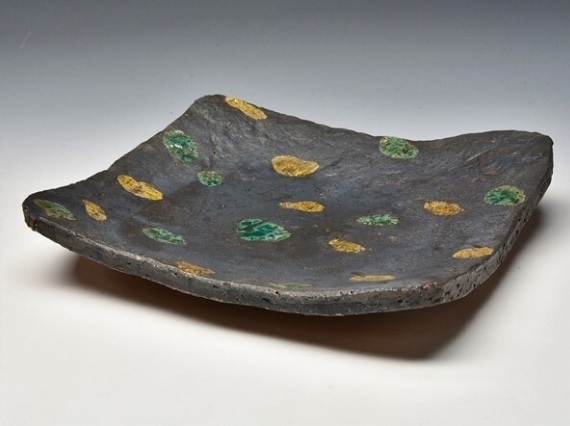 - 魯山人 銀彩 銀三彩水玉 皿 平鉢 ロ印 本物返品OK 24123050