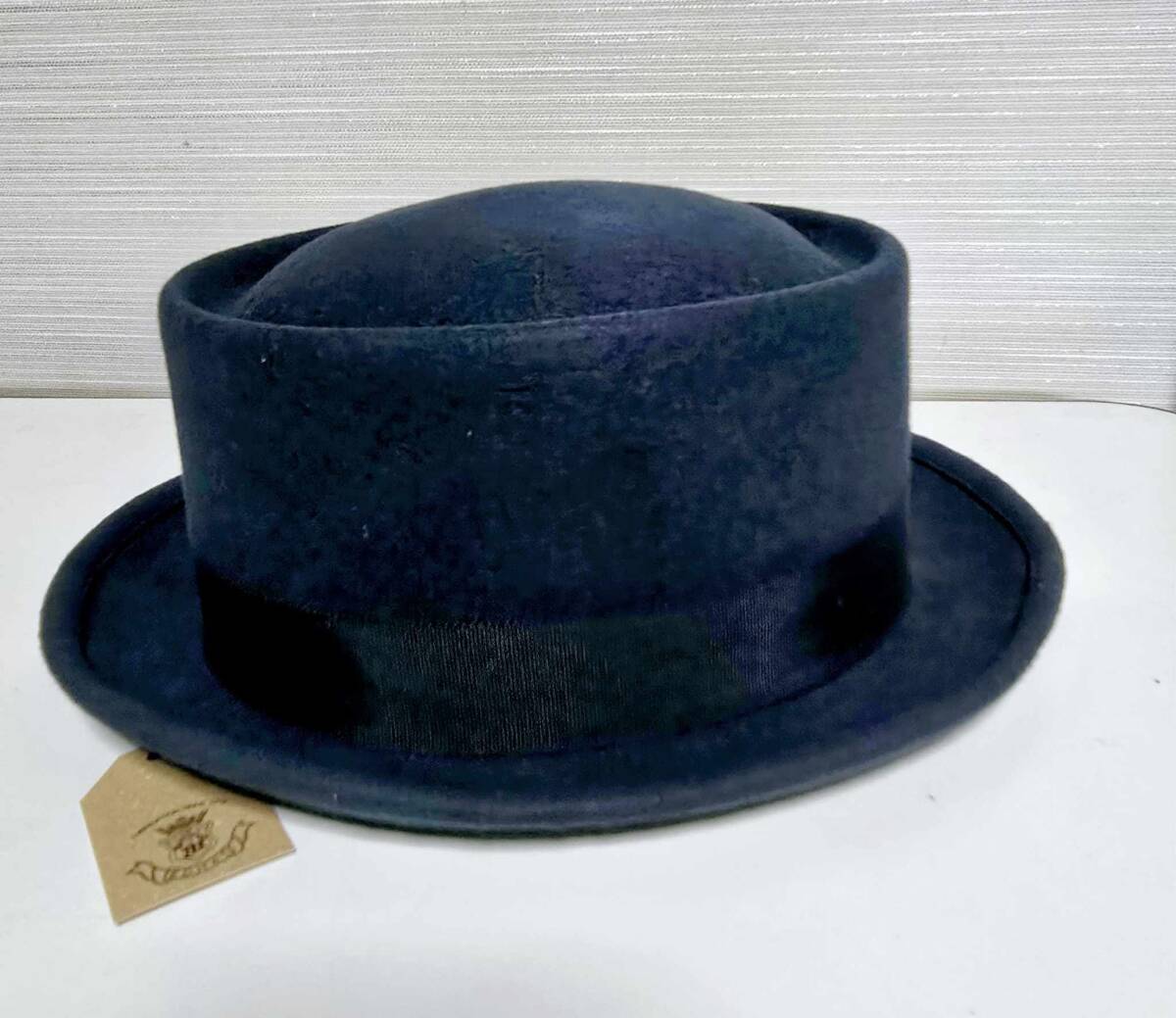 - 日本の匠 国産EDOハット 固いボウタイ クラシック ポークパイハット 濃紺