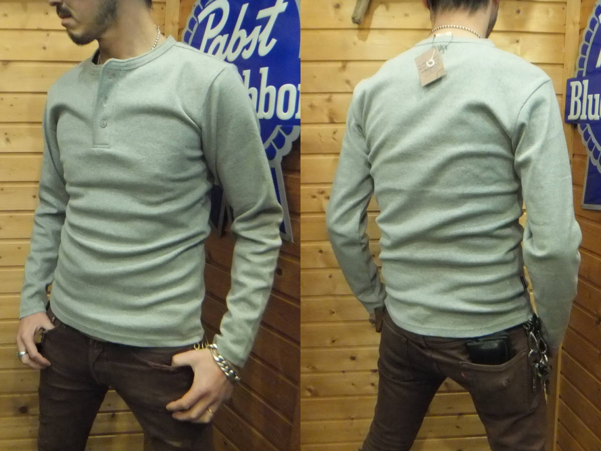 - アヴィレックス正規店 リブ素材 長袖Tシャツ[3つボタン=ヘンリーネック][グレイ][L]新品 6153482-14 ※〒レターパック発送