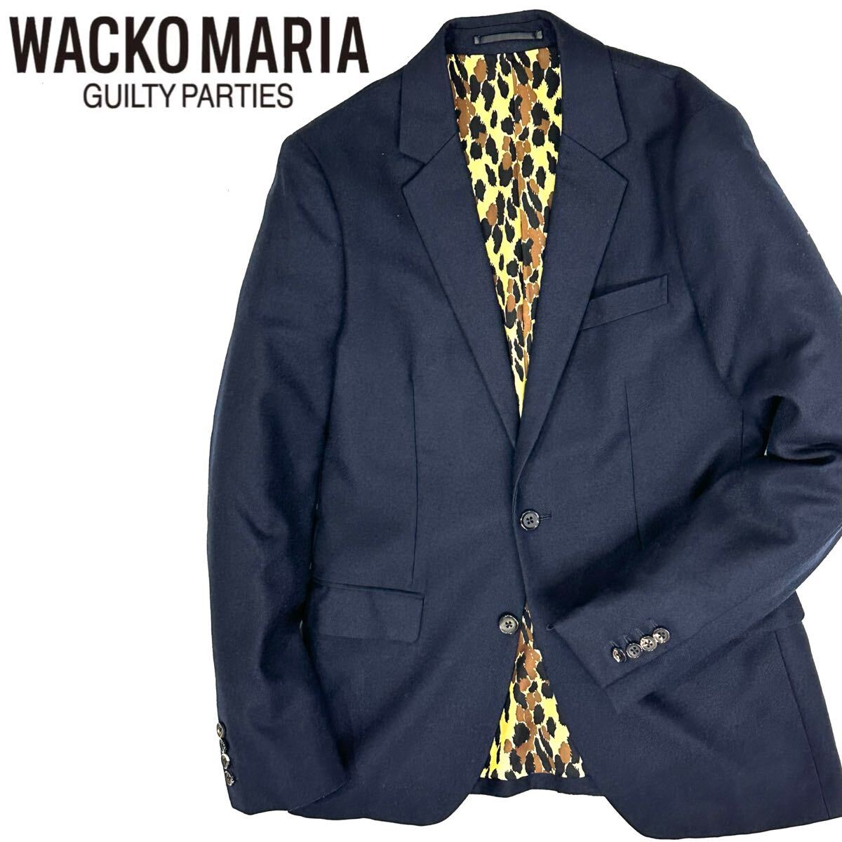 - 美品!!日本製 WACKO MARIA GUILTY PARTIES ワコマリア 柔らかい ウール100% レオパード 豹柄 2B テーラード ジャケット(M)ネイビー メンズ