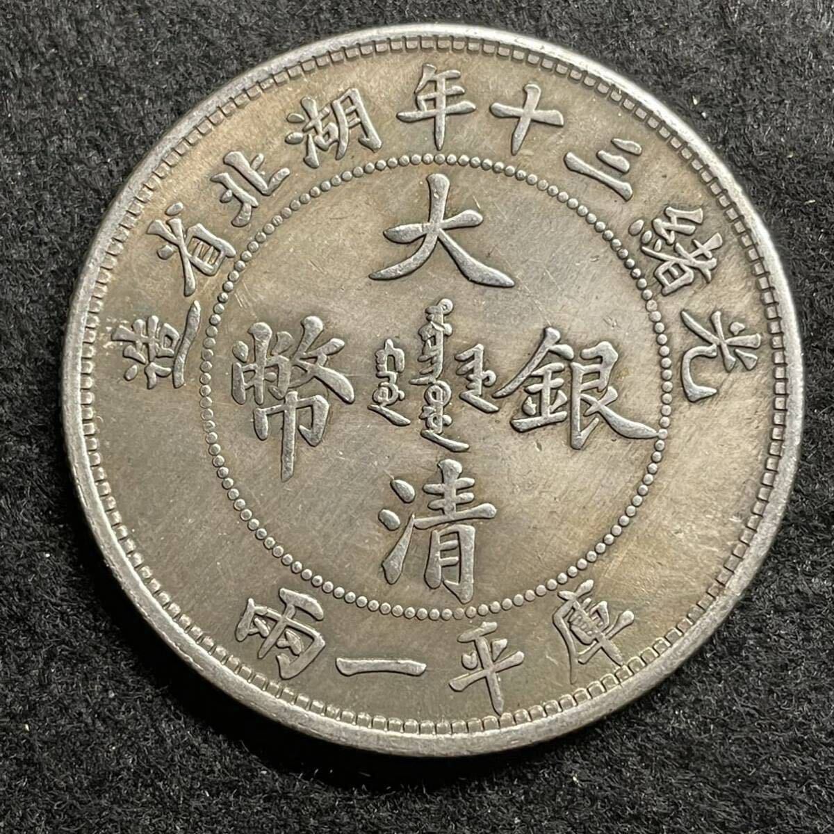 - 希少 庫平1両 中国 大清 光緒三十年 元寶 中国 清 湖北省造 古銭 骨董品 大型硬貨 外国銀貨 あ449