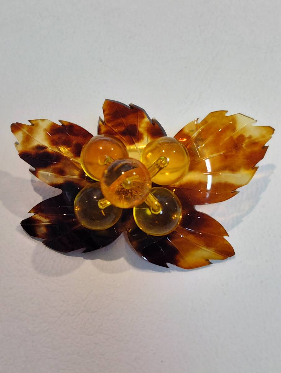 - べっ甲薄つくり・ブドウ状ブローチ・花びらブローチ・希少品
