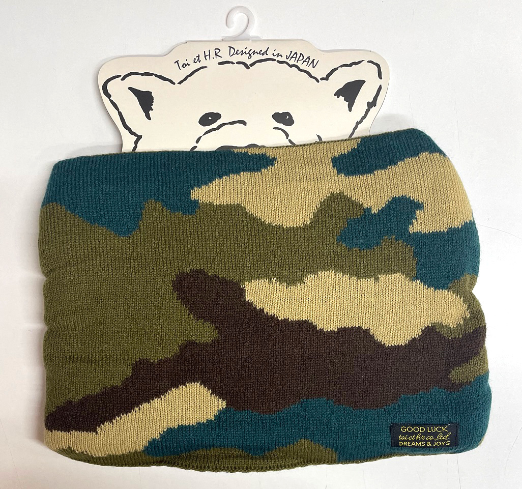- トワ・エ・アシュエール 裏地ボア ネックウォーマー 迷彩柄 グリーン