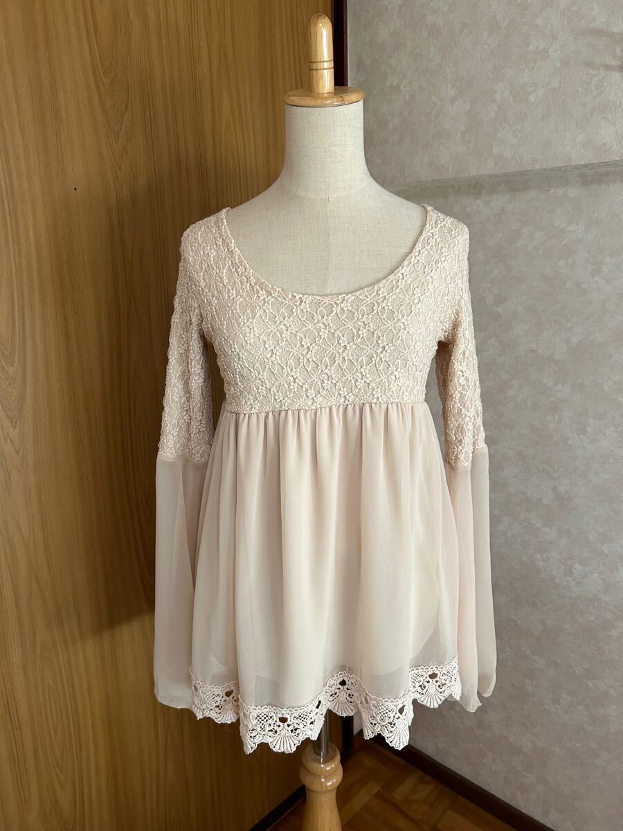 - 美品 リエンダ シフォン レース チュニック / ベージュ フリー rienda