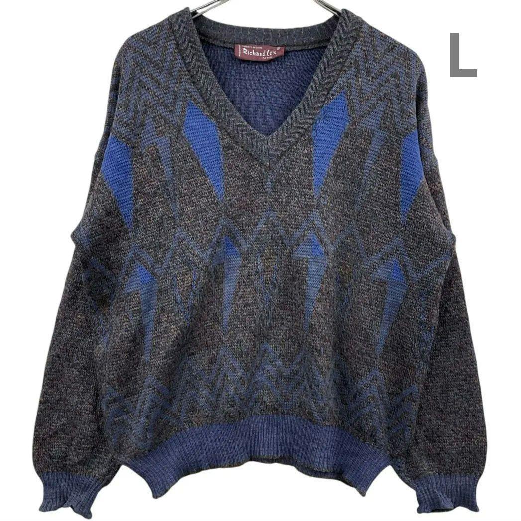- ヴィンテージ メンズセーター ニット Vネック L相当 フランス製【962】
