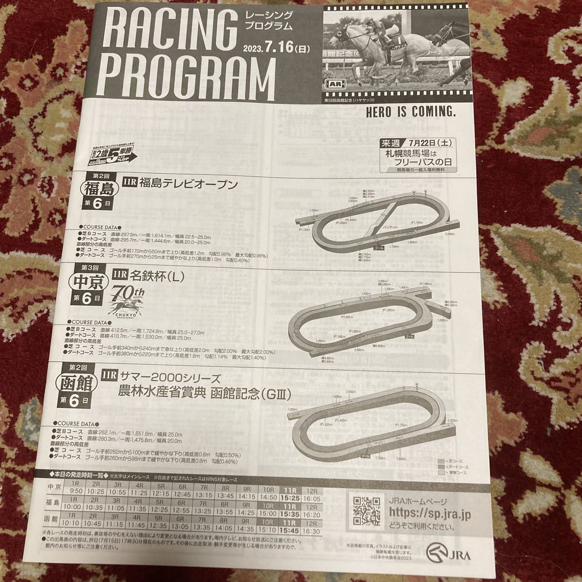 - JRAレーシングプログラム2023.7.16(日)函館記念(GⅢ)、名鉄杯(L)、福島テレビオープン