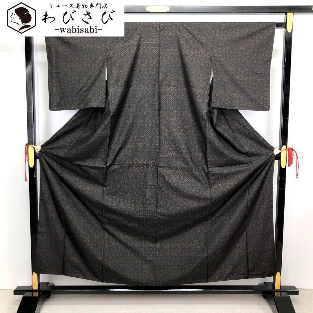 > 本場大島紬 染大島 抽象模様 証紙付 黒色 K-2910 着物 きもの kimono 和服 和装 中古 リサイクル着物 【送料無料】