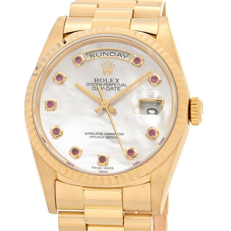 > [3年保証] ロレックス メンズ デイデイト 18238NGR S番 K18YG ルビーインデックス 金無垢 ホワイトシェル 自動巻き 腕時計 中古 送料無料
