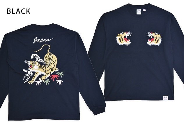 - USコットン刺繍長袖Tシャツ「TIGER」◆HOUSTON ブラックXXLサイズ 22276 ヒューストン 虎 トラ タイガー 和柄 ロングTシャツ