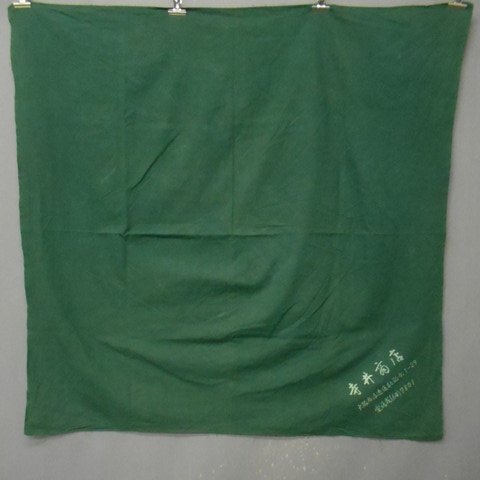 - 風呂敷 緑地 [A21498] 文字 長さ98cm 幅100cm 木綿 古布 古裂 リメイク 材料