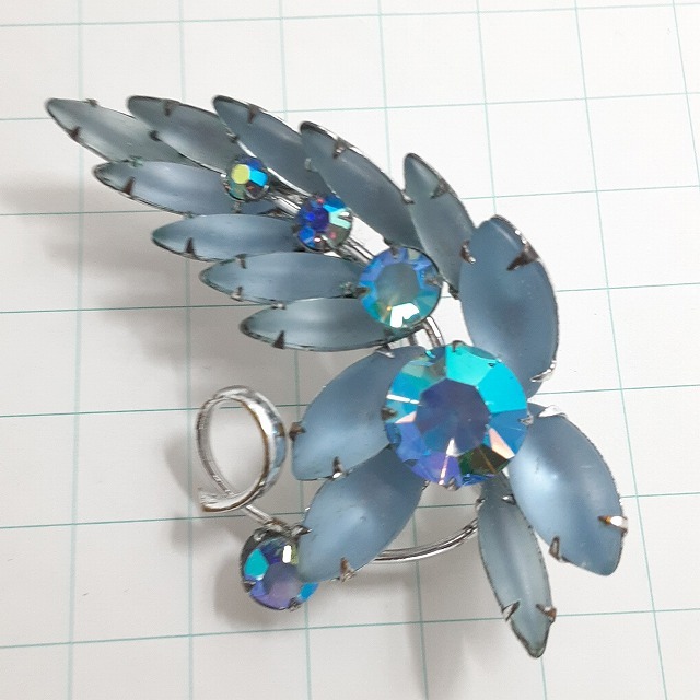 - 送料無料)ビンテージ☆ブルーラインストーン☆アンティーク ブローチ A28263