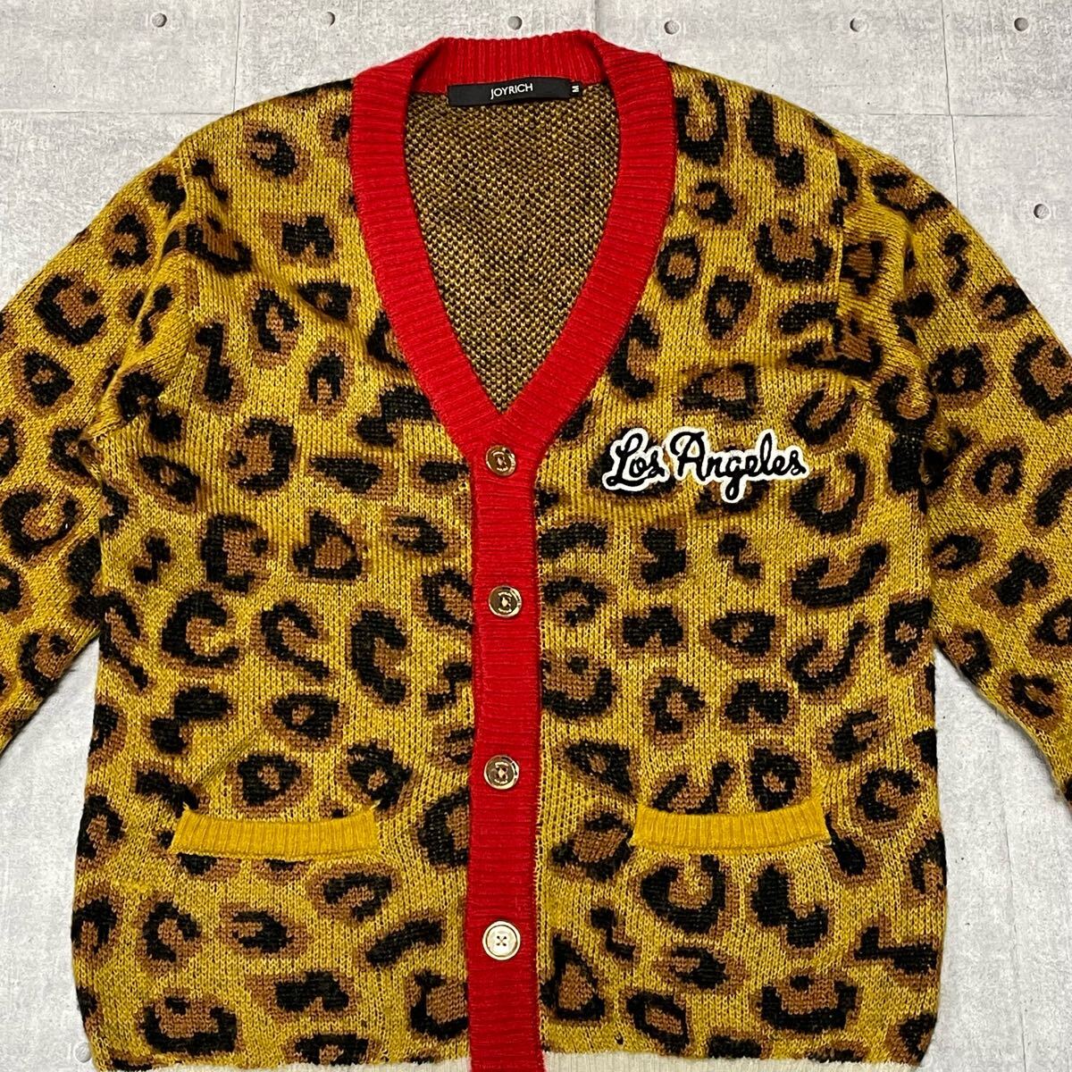 - 美品 JOYRICH ヒョウ柄 レオパード カーディガン LosAngeles 刺繍ロゴ メタル ロゴ入りボタン 使用感うすい美品 ウール ニット YL1369