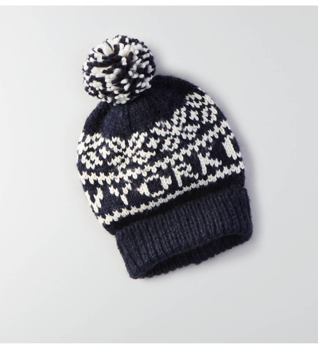 > * ラスト2 * 新品 アメリカンイーグル AEO NYC Snowflake Beanie スノーフレークビーニー ニット帽 帽子 キャップ ビーニー / Navy *