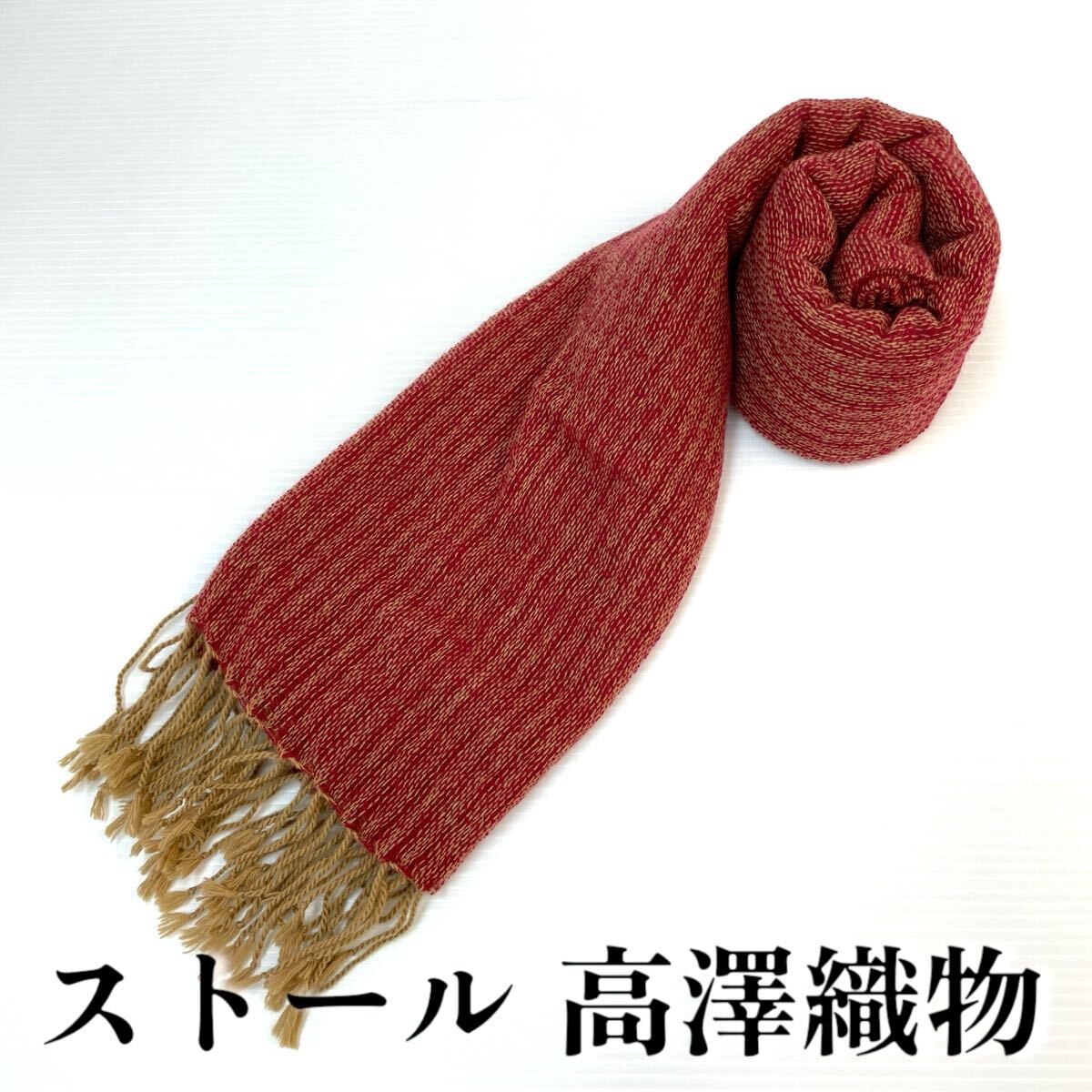 > 【ストール 高澤織物】未使用 カシミヤ100% 赤 キャメル 秋冬 スカーフ ショール 肩掛け 膝かけ 国産 日本製 防寒 #0263-502Z4