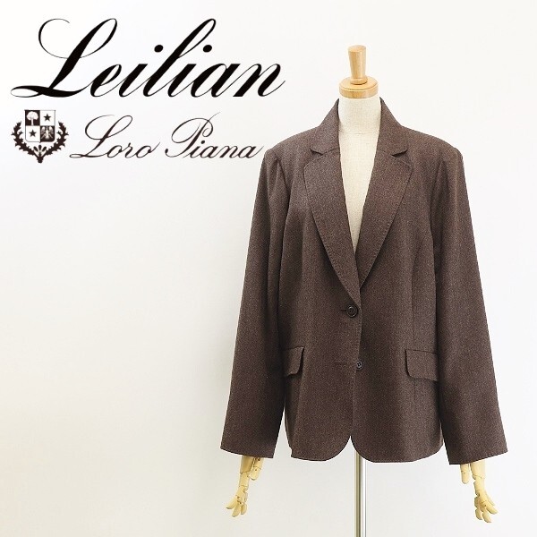 > 美品◆Leilian レリアン×ロロピアーナ カシミヤ&シルク混 ウール 2釦 ジャケット ダークブラウン 13+ 大きいサイズ