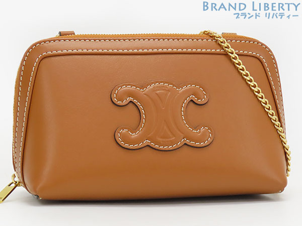 > 超美品 セリーヌ キュイル トリオンフ チェーン クラッチバッグ チェーンショルダーバッグ ポシェット ポーチ タン ブラウン
