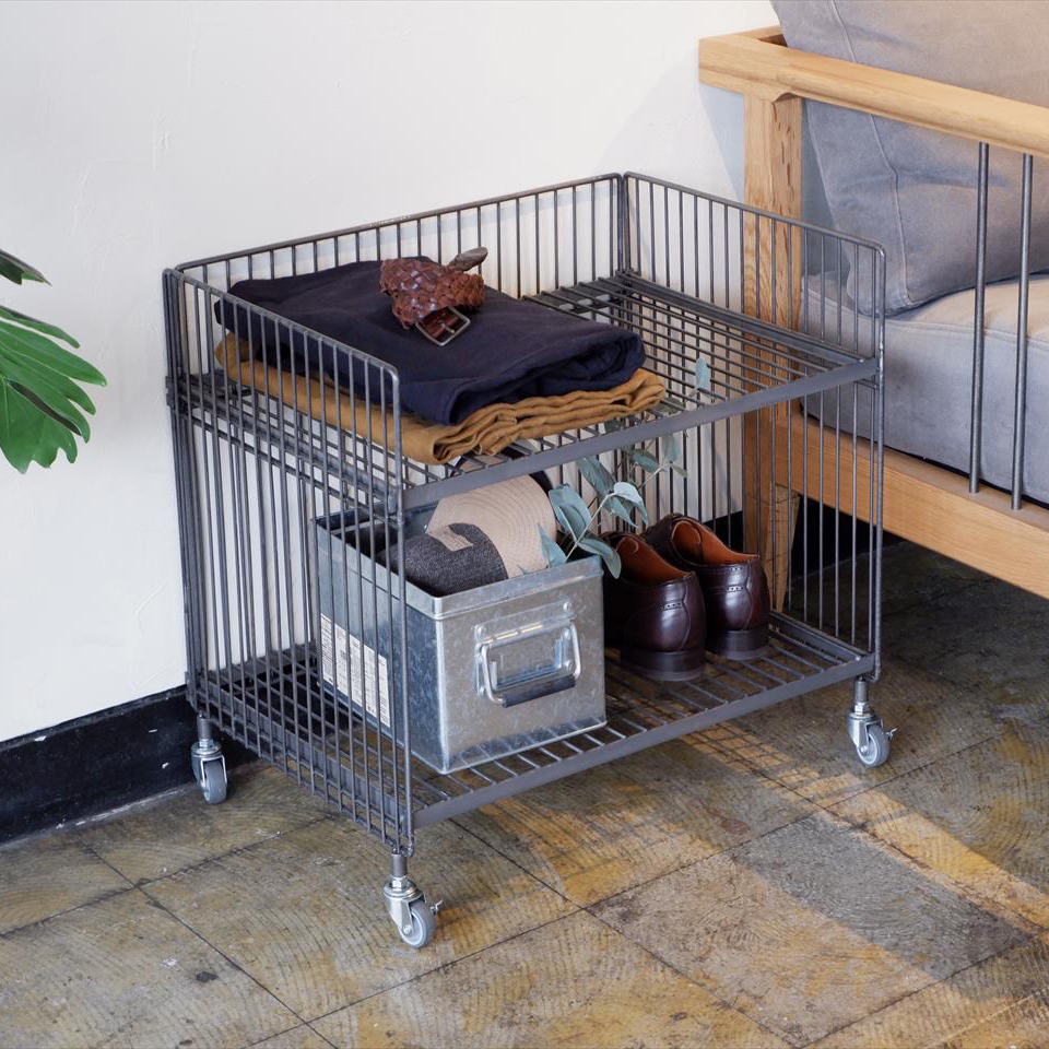 - ワゴン スチールラック 収納 棚 キャスター付き ワイヤー ワイド 幅広 2段 インダストリアル 無骨な インテリア おしゃれ 鉄製 シンプル