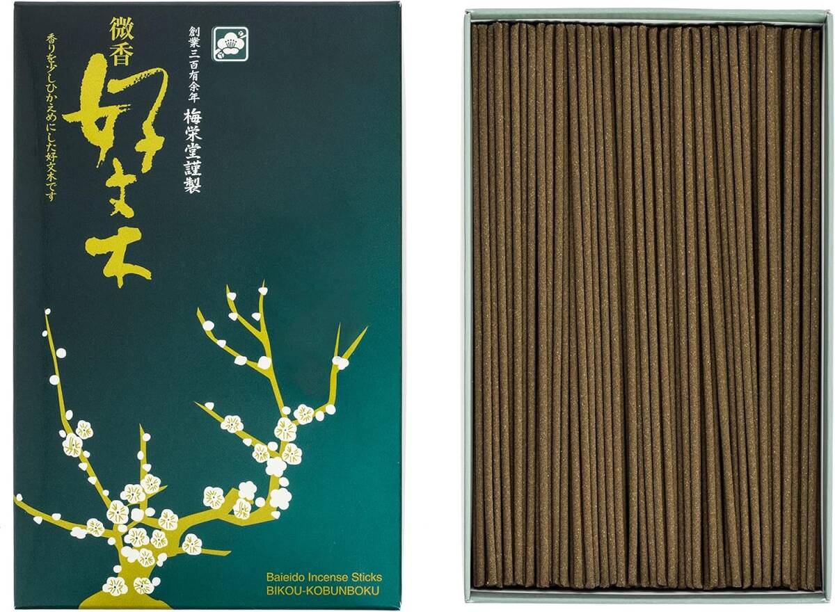 - 梅栄堂のお線香 微香好文木 短寸平型バラ詰 有煙(緑箱)
