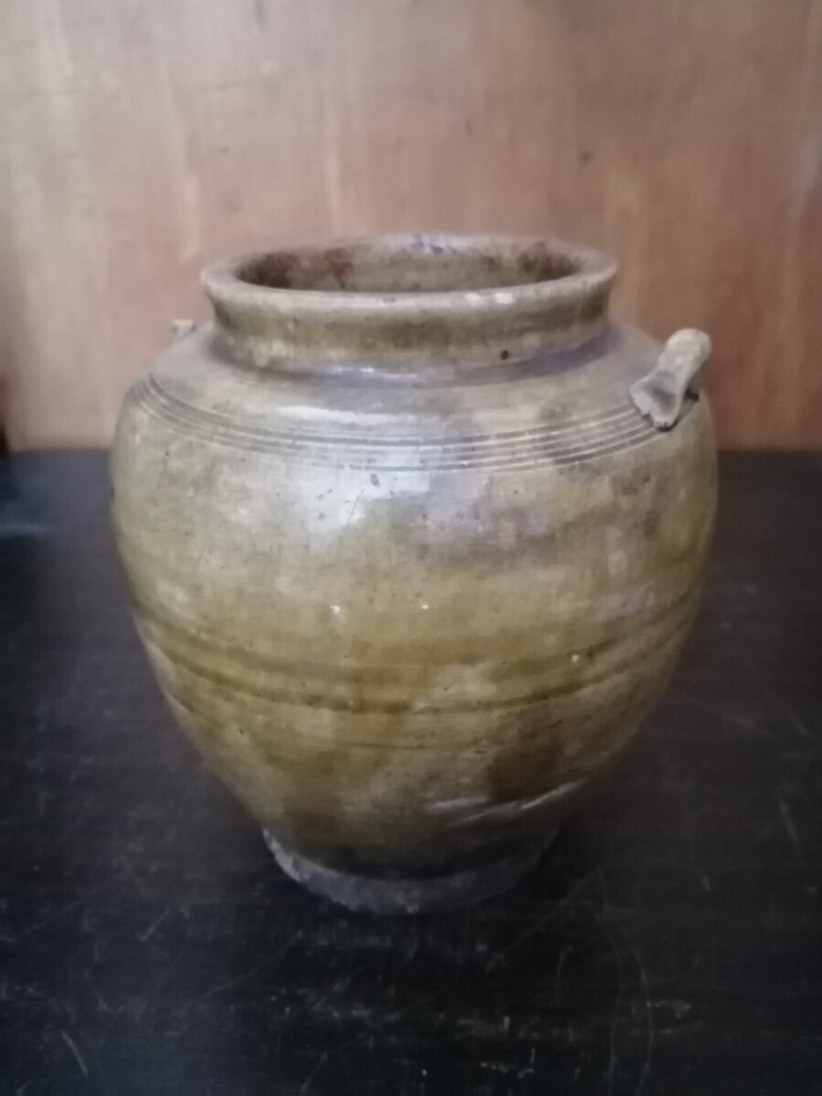 - 古瀬戸 線文二耳壺 江戸初期 壺 小壺 茶壺 瀬戸 美濃 民芸 民具 六古窯 TB19j10