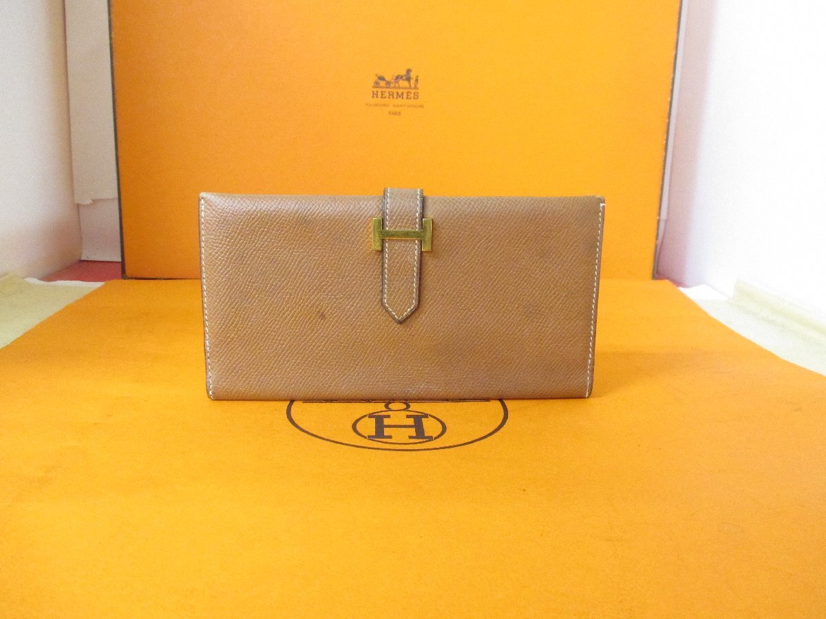 > 本物保証【即決で送料無料】エルメス/旧/ベアン/ゴールド系/2つ折り/長財布/G金具/〇S刻印/小銭入れ/型押し革製/男女兼用/エルメスの正規品