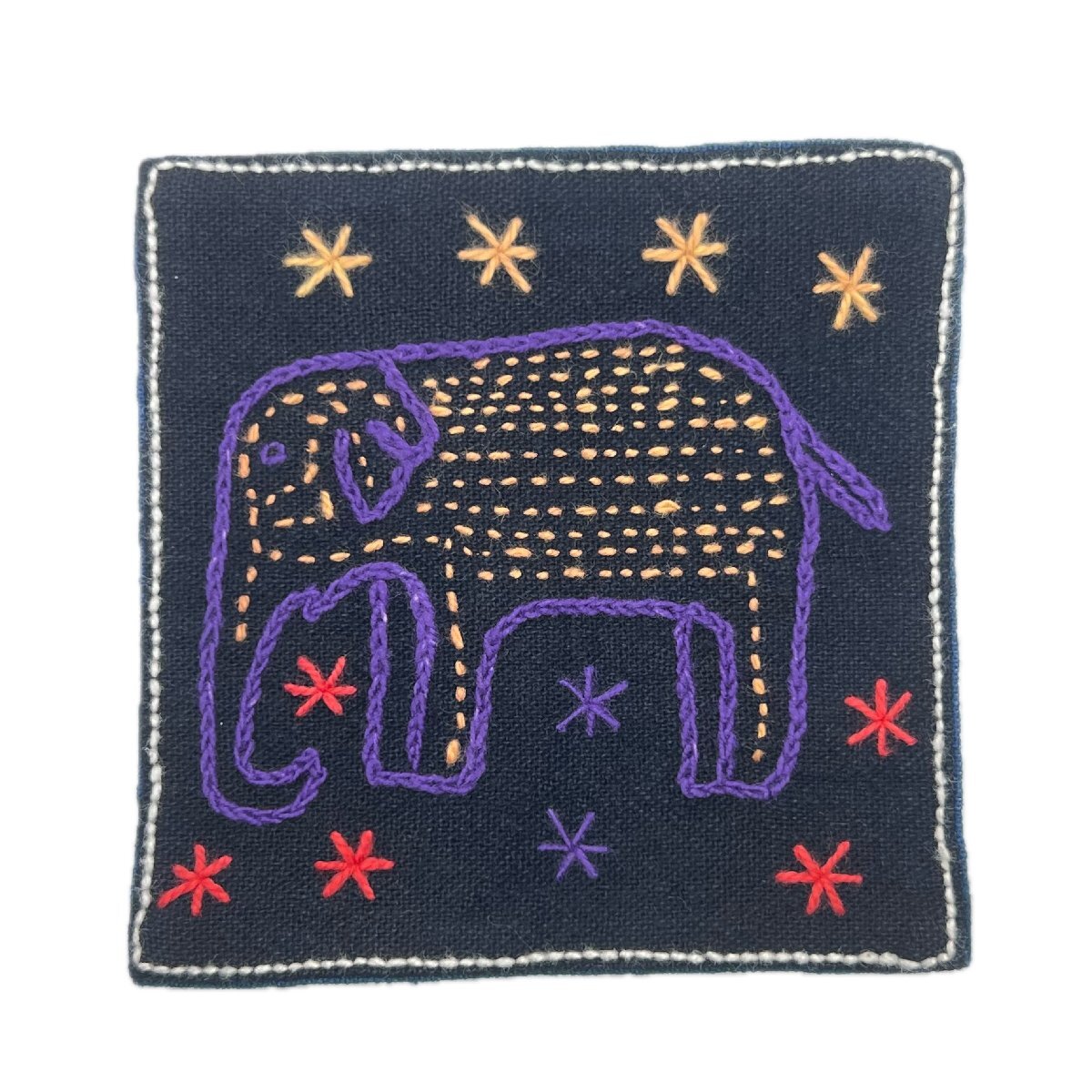 > エスニックモチーフ刺繍 アジアン雑貨手芸材料 プリミティブアート ハンドメイドコースター ラオスレンテン族 動物 ゾウ