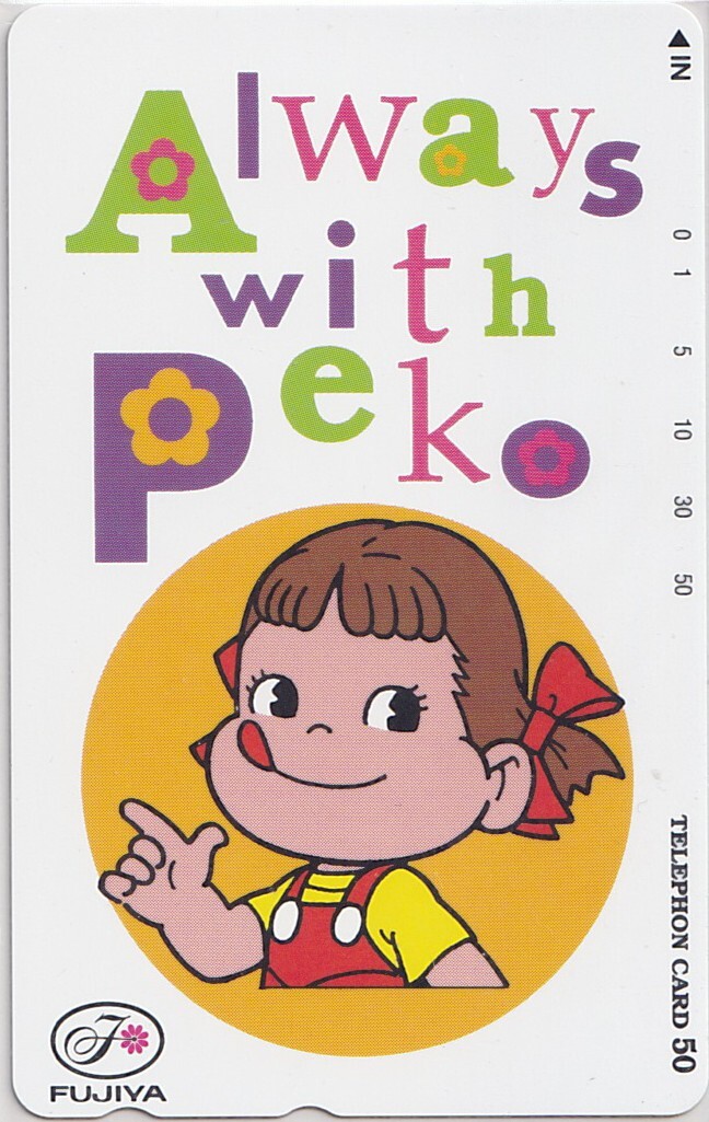 - =不二家ペコちゃん= 「オリジナル カラフル文字」販売テレカ #w