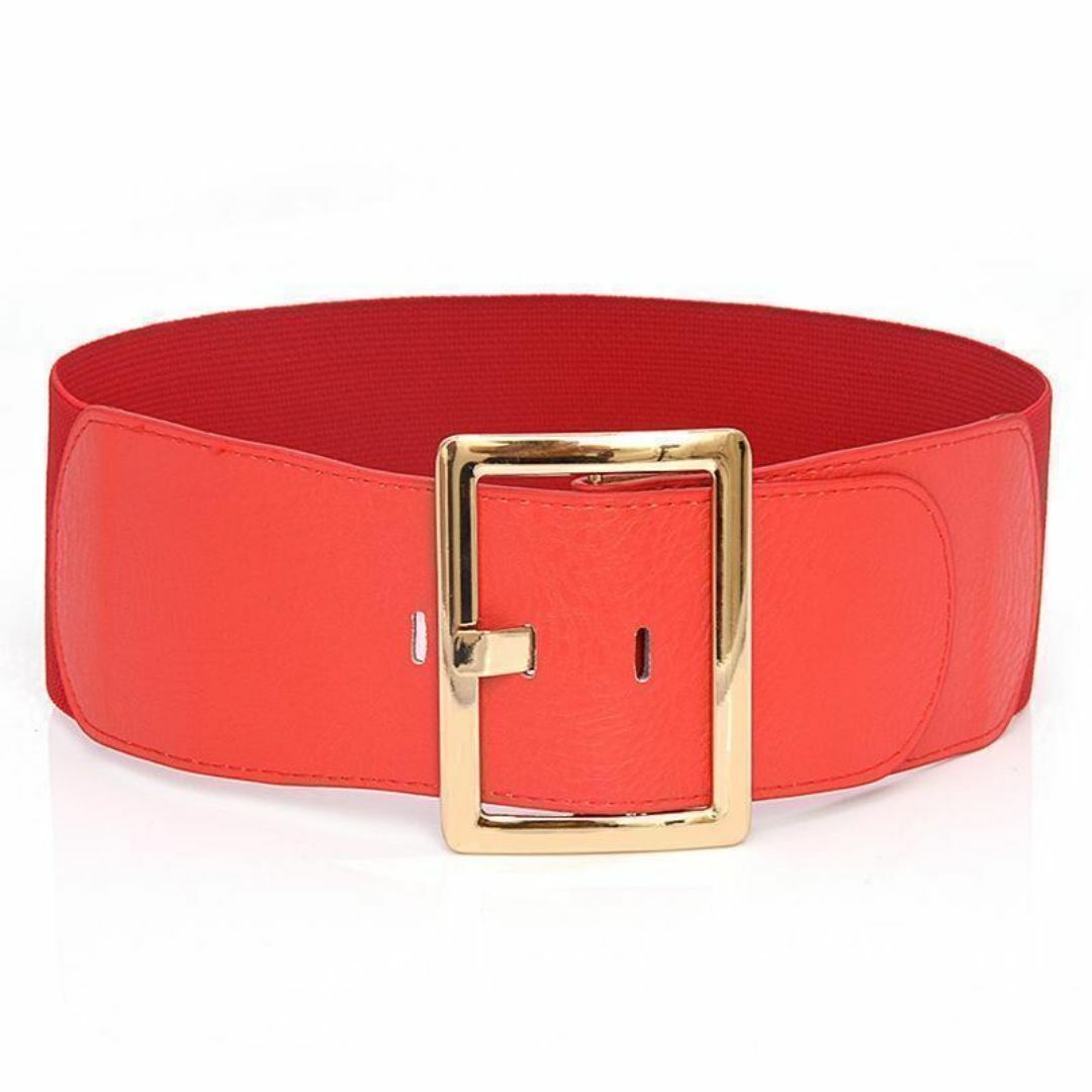 - 【レッド】【ゴールドバックル 幅広ゴムベルト】金 レディース 太ベルト