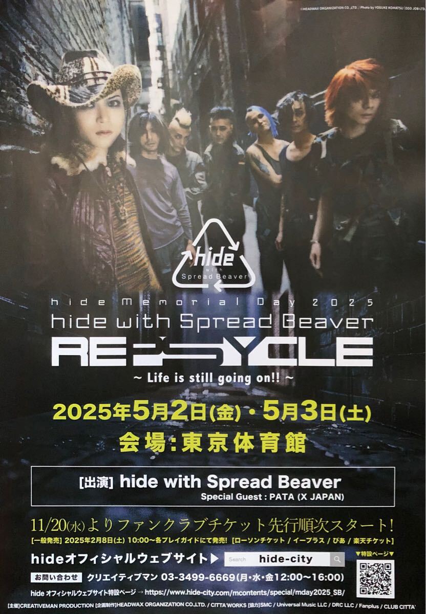 - hide Memorial Day 2025 hide with Spread Beaver “REPSYCLE” 〜Life is still going on!!〜 チラシ 非売品 Special Guest PATA(X JAPAN)