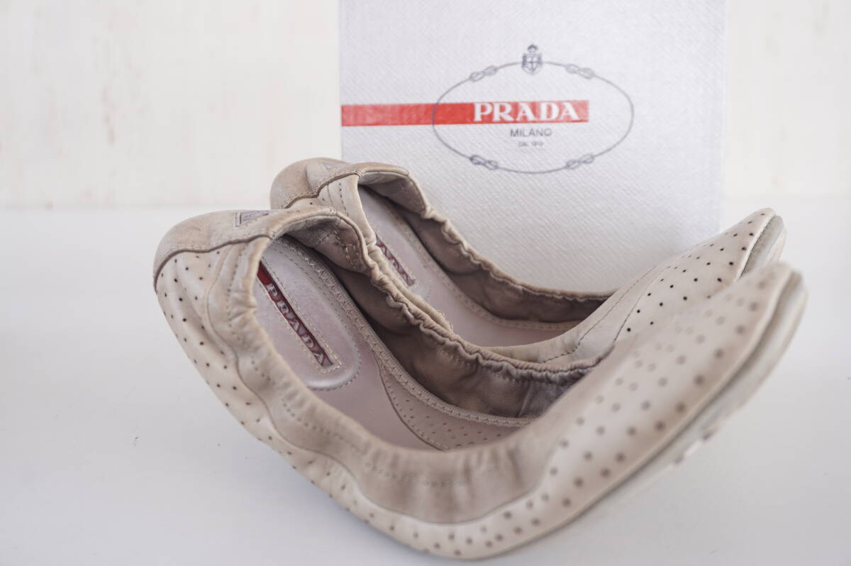 - プラダ PRADA*36/23cm相当*箱付き*バレリーナシューズ/革靴/フラットシューズ/ぺたんこ*パンチングレザー*3F5148 NAPPA AVIATORWASHED