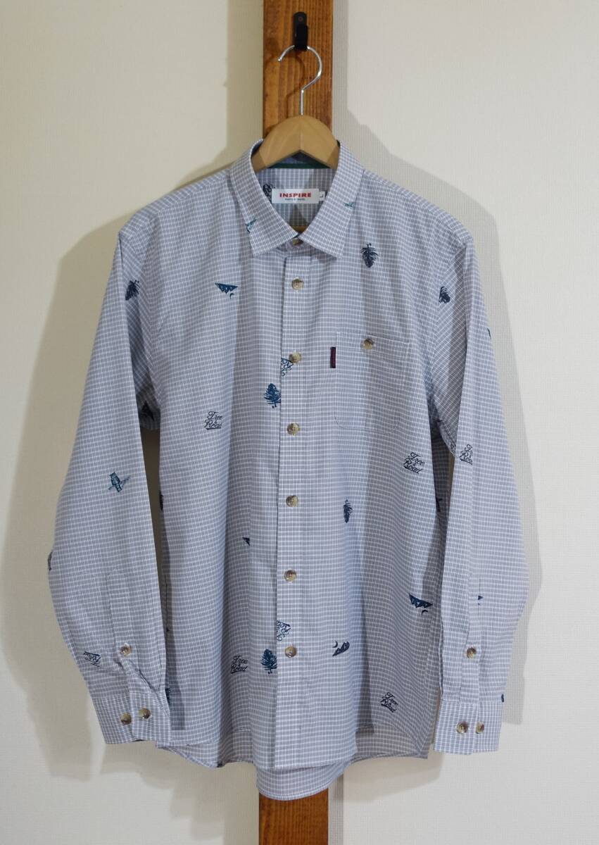 > 美品★INSPIRE/インスパイア◇シャツ レギュラーカラー チェック プリント柄 アウトドアテイスト 岐阜武 GIFUTAKE PHOTO&TRAVEL