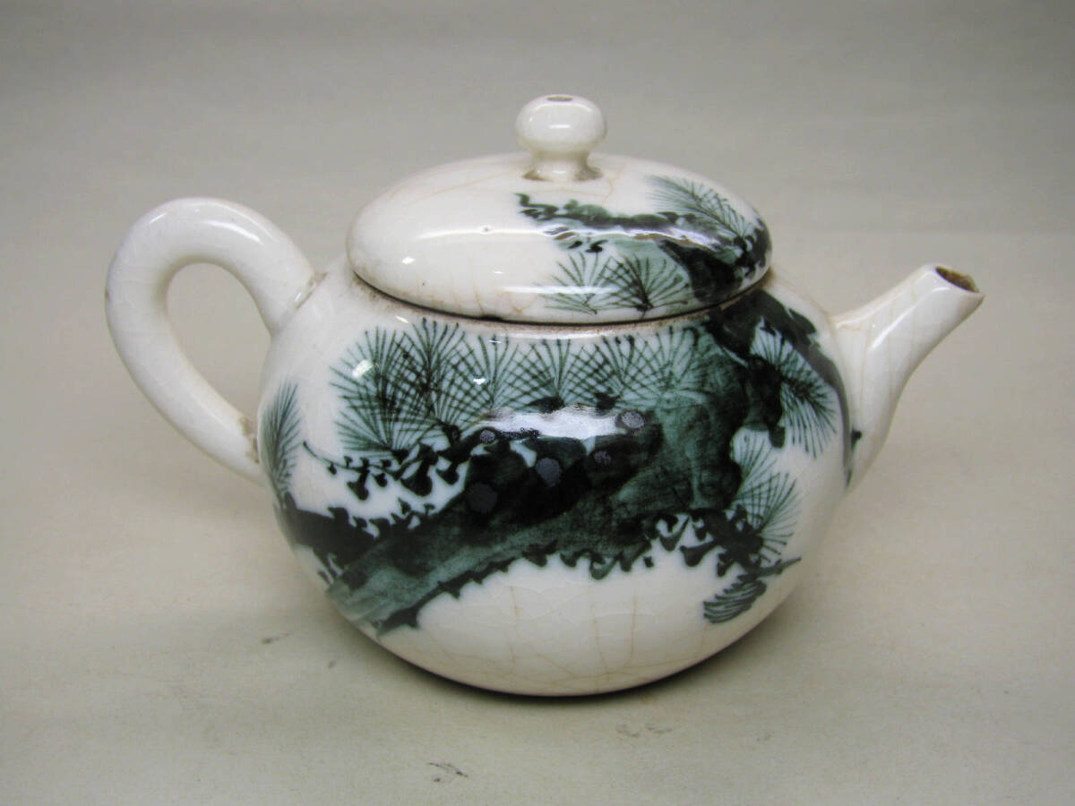 - [大幸] 在銘 清水焼水墨老松画後手急須 古い!! 貫乳釉 白磁 京焼 煎茶具 煎茶道具