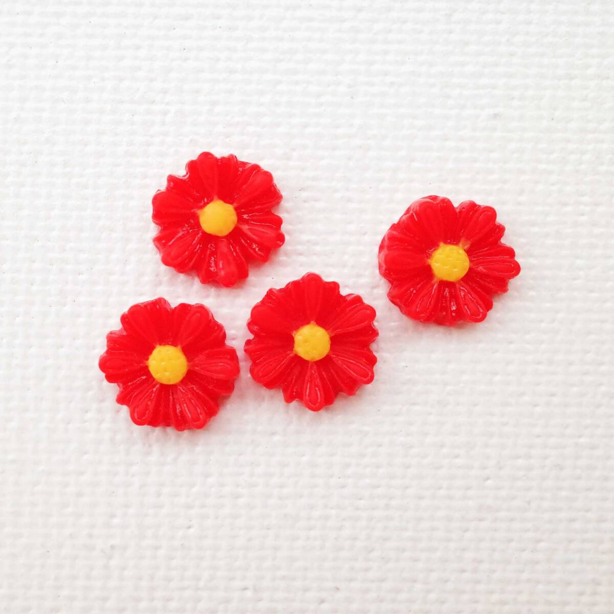 - ☆お花型カボション☆レジン☆ハンドメイド素材☆赤☆4個セット☆