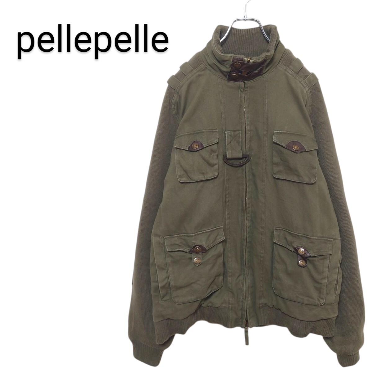- 【pellepelle】リブニット切り替え ミリタリージャケット A-3070