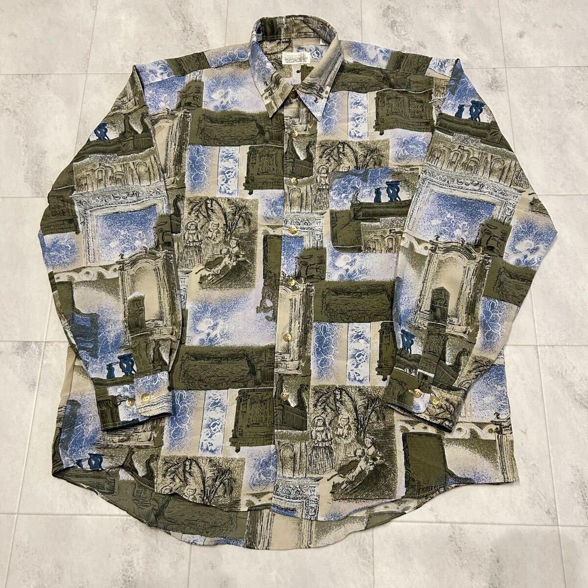- Chariot brand 総柄 柄シャツ 風景 レトロ アート ビンテージ 長袖シャツ ポリエステル100%