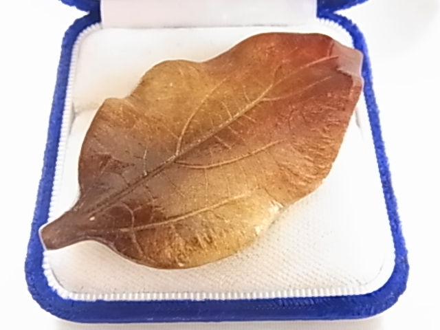 > ビンテージ/ヴィンテージ 薄いブラウントーンのリーフデザイン 葉っぱのモチーフ 葉 やや大き目存在感 JAPAN刻印 レトロブローチ▽