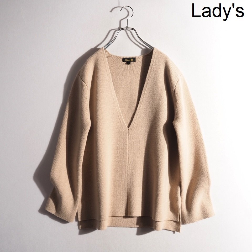 > P6659P ●Drawer ドゥロワー● 9Gウールカシミヤ ミラノ編み Vネックニット ベージュ 1 オーバーサイズ / 6513-199-1055 秋冬 rb mks
