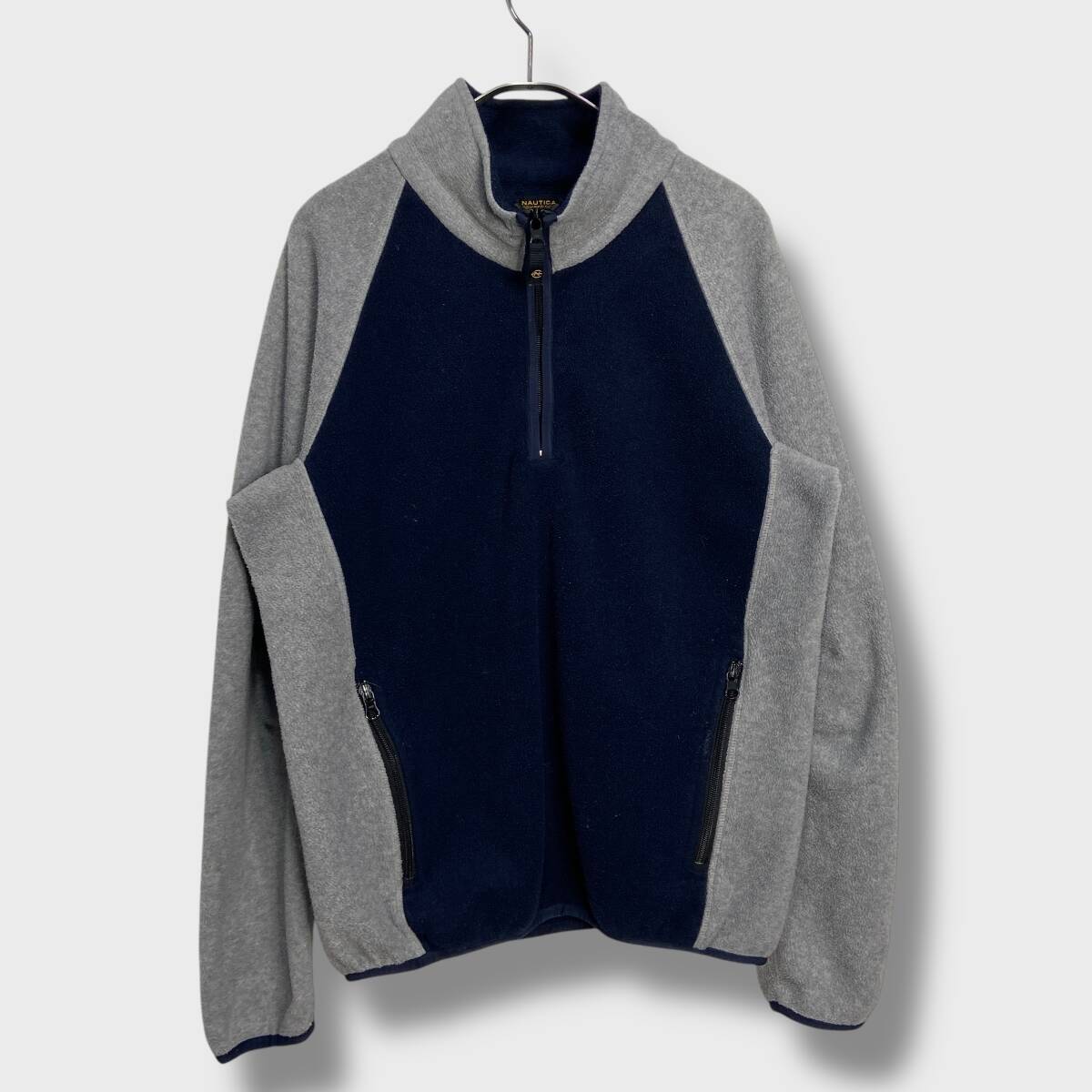 > 送料無料☆NAUTICA☆ノーティカコンペティション☆90s☆USA製☆切替ハーフジップフリース☆スリーブロゴ☆グレー☆ネイビー☆S☆B25M