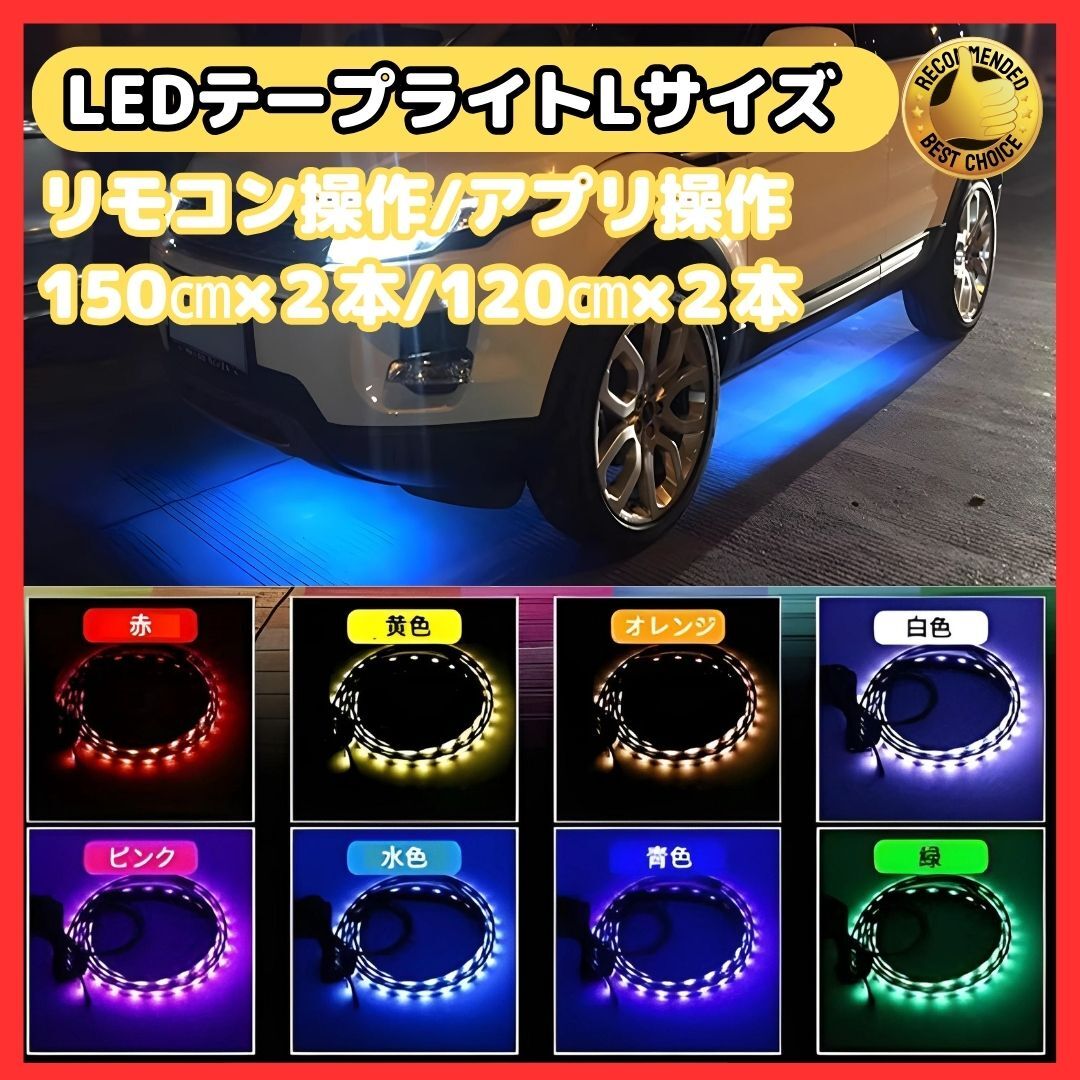 - (A) RGB LED Lサイズ テープライト アンダーライト 4本セット サウンドセンサー 内蔵 フルカラー 防水 IP65フラッシュ リモコン スマホ操作