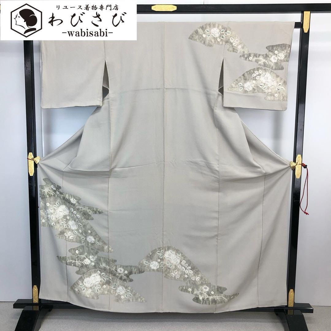 - 訪問着 上品な辻が花絞り 灰白色 縮緬 K-4411 着物 きもの kimono 和服 和装 中古 リサイクル着物 【送料無料】