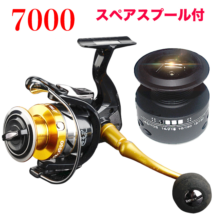 - YU127 スピニングリール 釣り リール 4.7: 1 ギア 7000番 海釣り 川釣り スペアスプール付 左右ハンドル交換可能 淡水 海水 安定性 耐久性