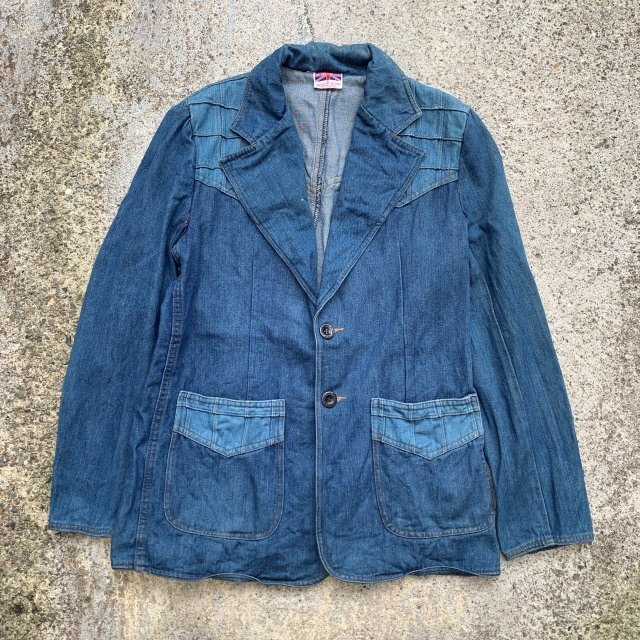 - 【S/M相当】70s BRITANIA SPORTSWEAR デニム テーラードジャケット■ビンテージ オールド レトロ アメリカ古着 パッチワーク