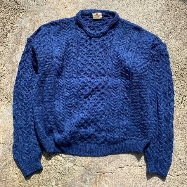 > 【XL】アイルランド製 carraigdonn ケーブル編み ウールニット 青無地■ビンテージ オールド アメリカ古着 フィッシャーマンセーター