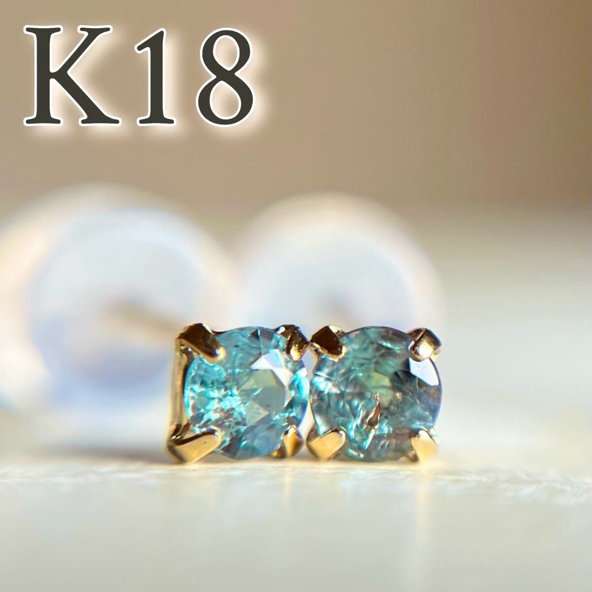 - K18 天然石アレキサンドライト ピアス ラウンド 希少 レア カラーストーン 18金