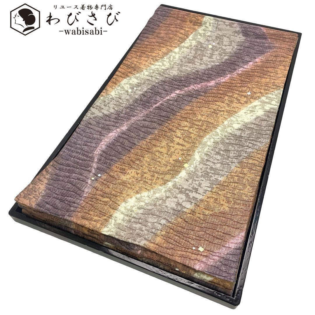 - 袋帯 金彩の魔術師 堀省平 染柄に箔散らし 辛螺色 紬 O-4707 着物 きもの kimono 和服 和装 中古 リサイクル着物 【送料無料】
