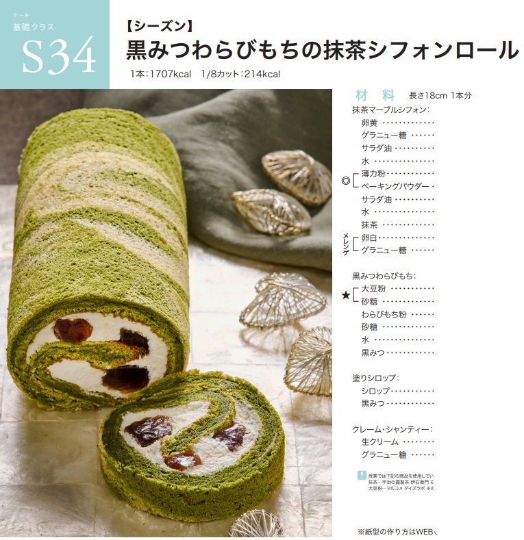 - ★ ABCクッキング 「 S34, 黒みつわらびもちの抹茶シフォンロール 」 ★