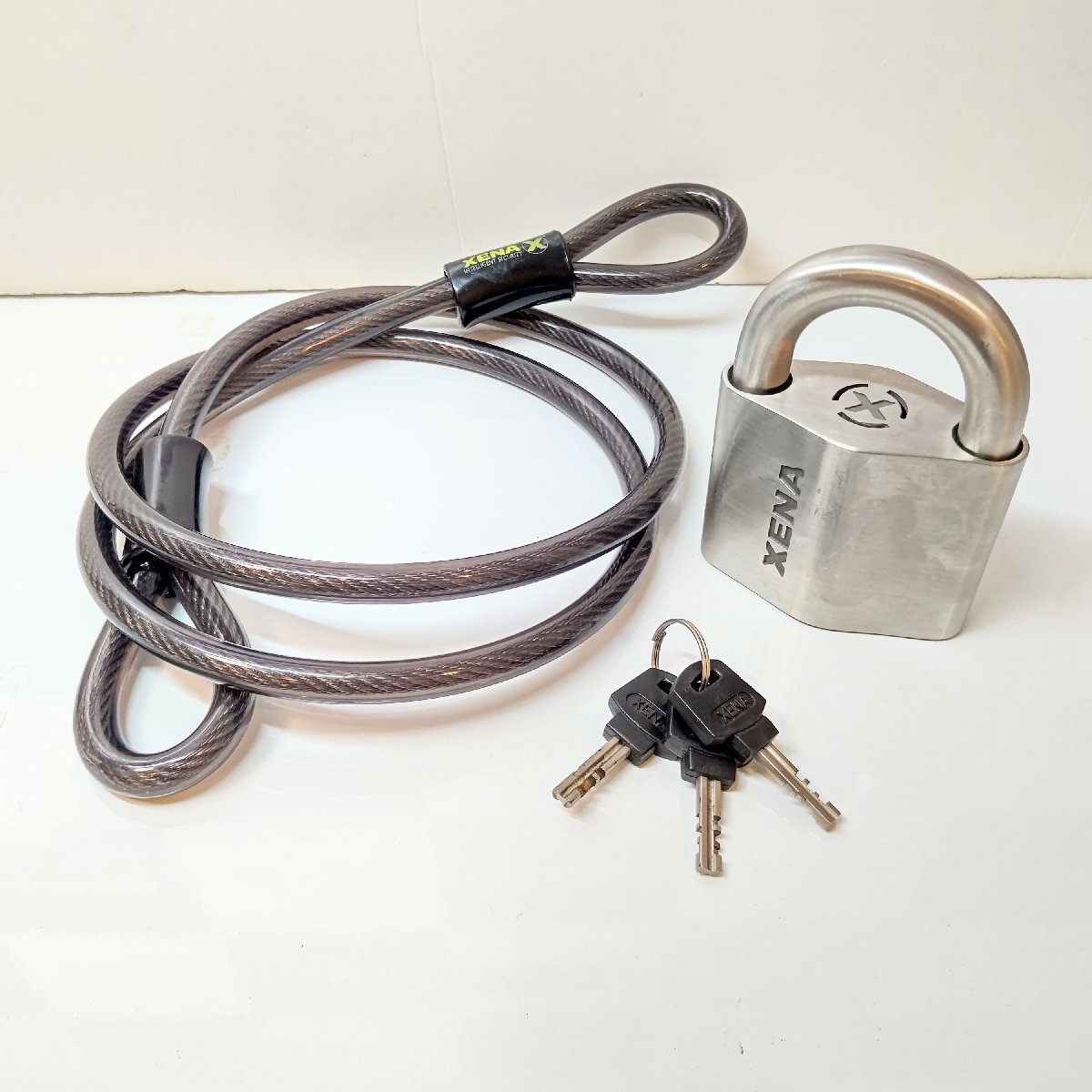 - 国内正規品 ゼナ XENA ブレットロック XPL28+ケーブル150cm 南京錠タイプ アラーム無し 盗難防止 バイク 展示品アウトレット