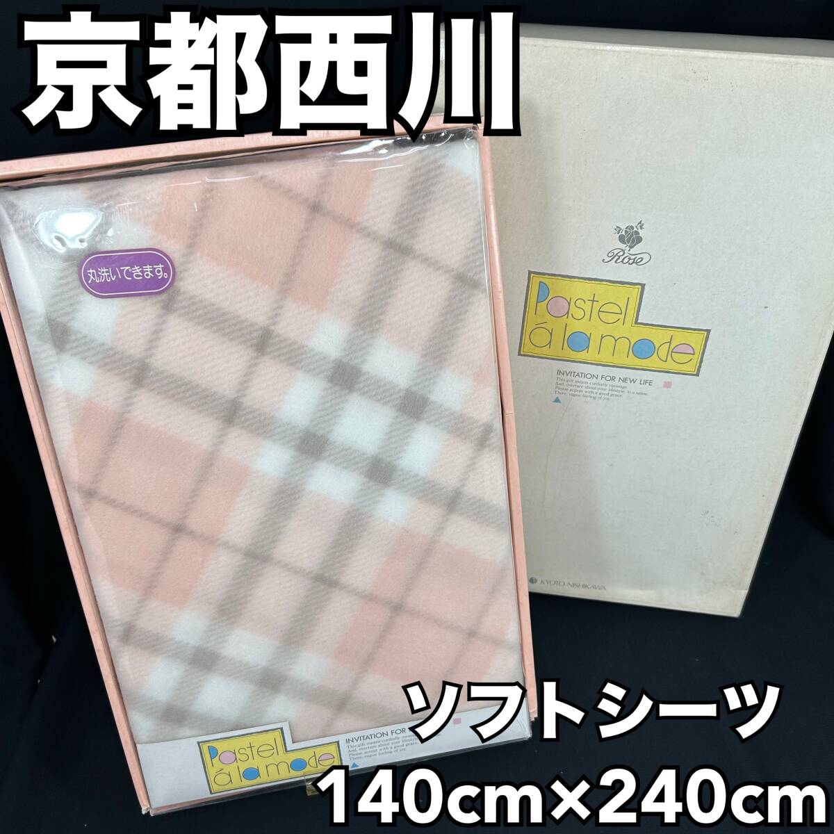 > 【未使用・保管品】京都西川 ソフトシーツ 140cm×240cm シングル シーツカバー ピンク チェッカー 寝具 丸洗いOK (E28)