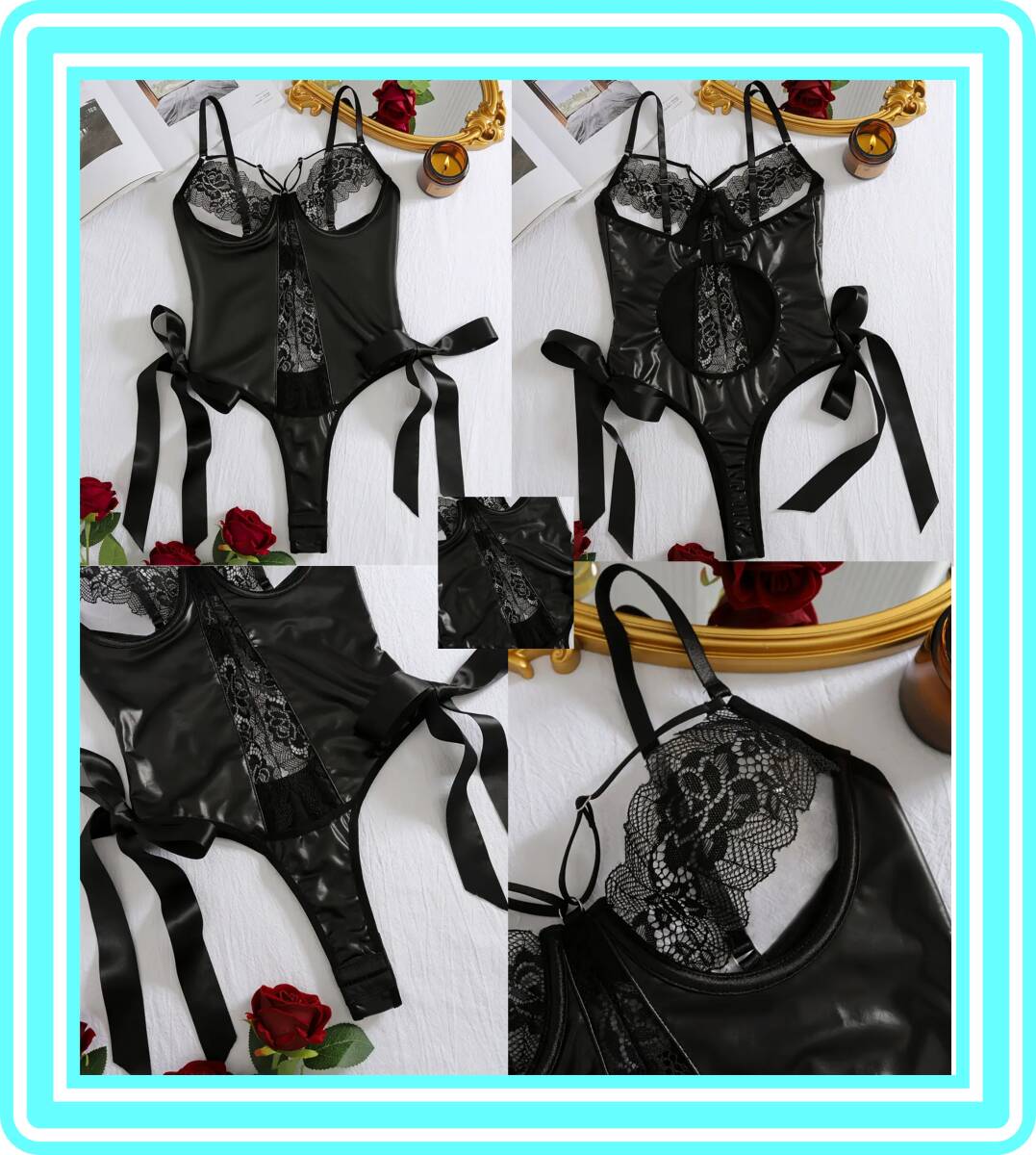 - ★超素敵★アンダーワイヤー★カットアウト★ベビードール★ランジェリー★フェイクレザー★オープンデザイン★クロッチホック★KB124S