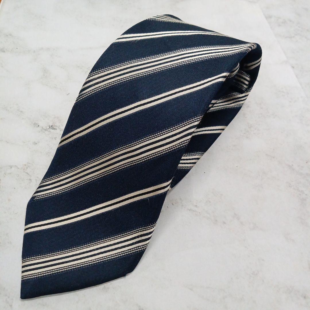 - フランコスパーダ ネクタイ 青 ストライプ柄 絹 シルク【n261】