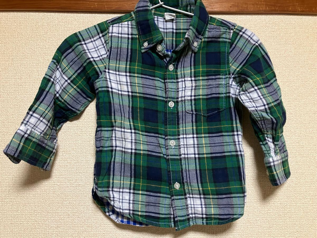 > ベビーギャップbabyGapキッズ子供服グリーンチェック長袖シャツ100サイズUSED※3years toddler・ チェック柄・キッズ服・ 長袖
